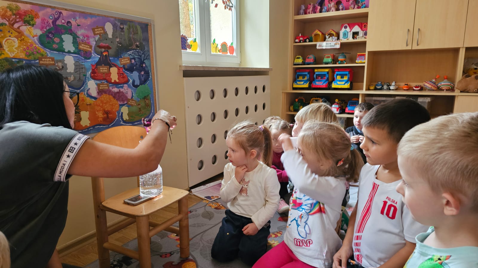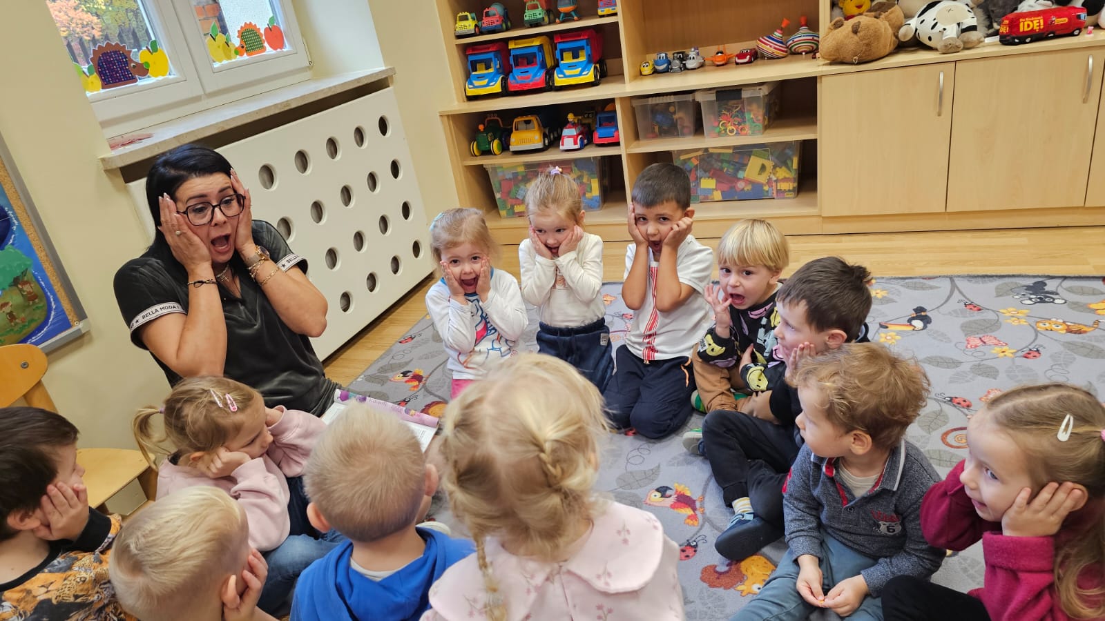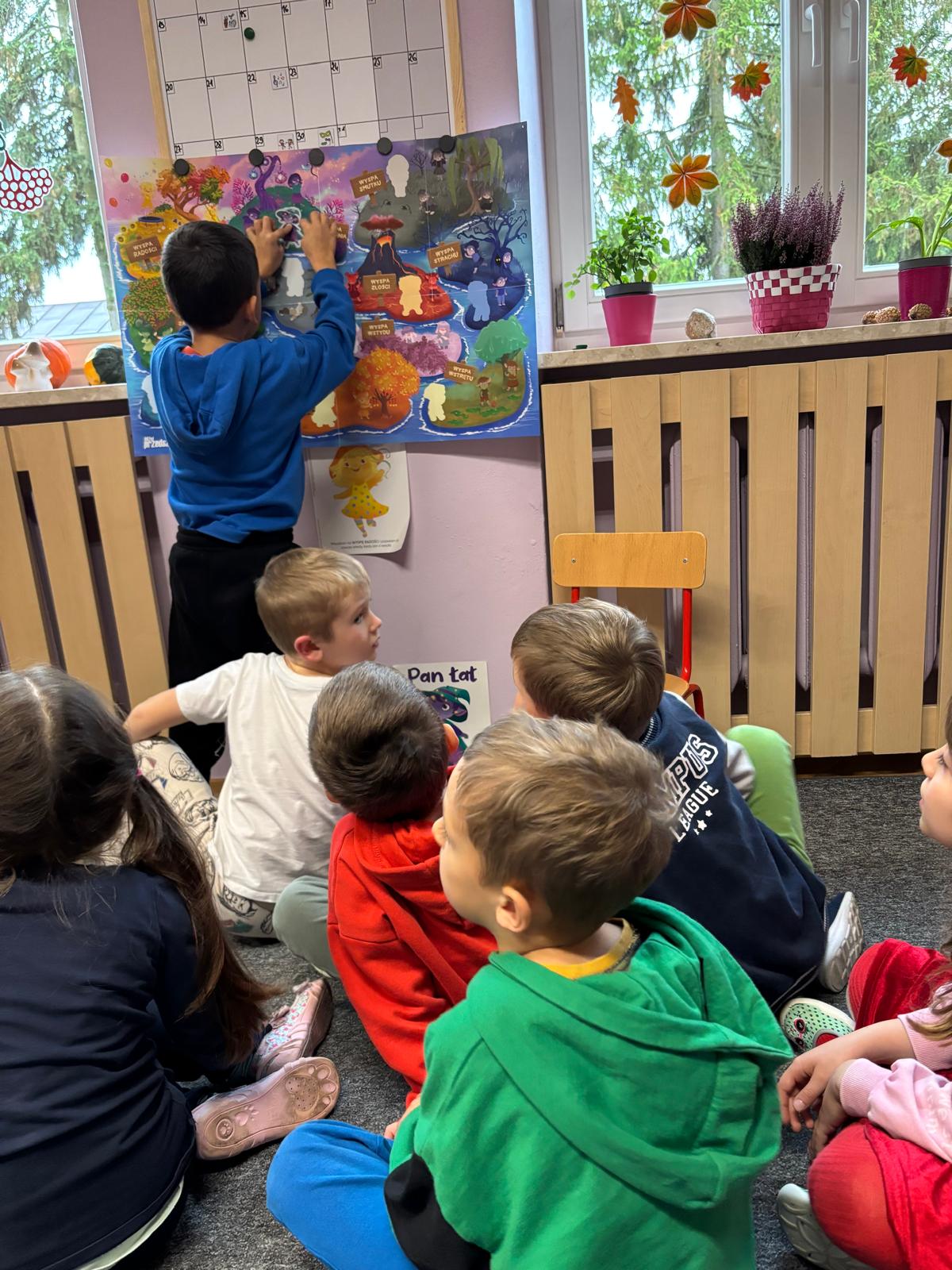 W październiku nasze przedszkolaki poznały kolejnego bohatera z Wyspy Emocji – Pana Łał z Wyspy Zdziwienia. Dzieci z zainteresowaniem wysłuchały bajki o Panu Łał, a następnie rozmawiały o tym, kiedy same czują się zdziwione i jak wygląda wtedy ich twarz oraz ciało. Nie zabrakło również twórczej pracy – przedszkolaki wykonały kartę pracy oraz wzięły udział w eksperymencie ze spadającymi gwiazdami i kometami, który wywołał mnóstwo radości, zachwytu i oczywiście… zdziwienia! Dzięki takim zajęciom dzieci uczą się rozpoznawać i nazywać emocje, a przy tym bawią się, odkrywają i doświadczają świata wszystkimi zmysłami.