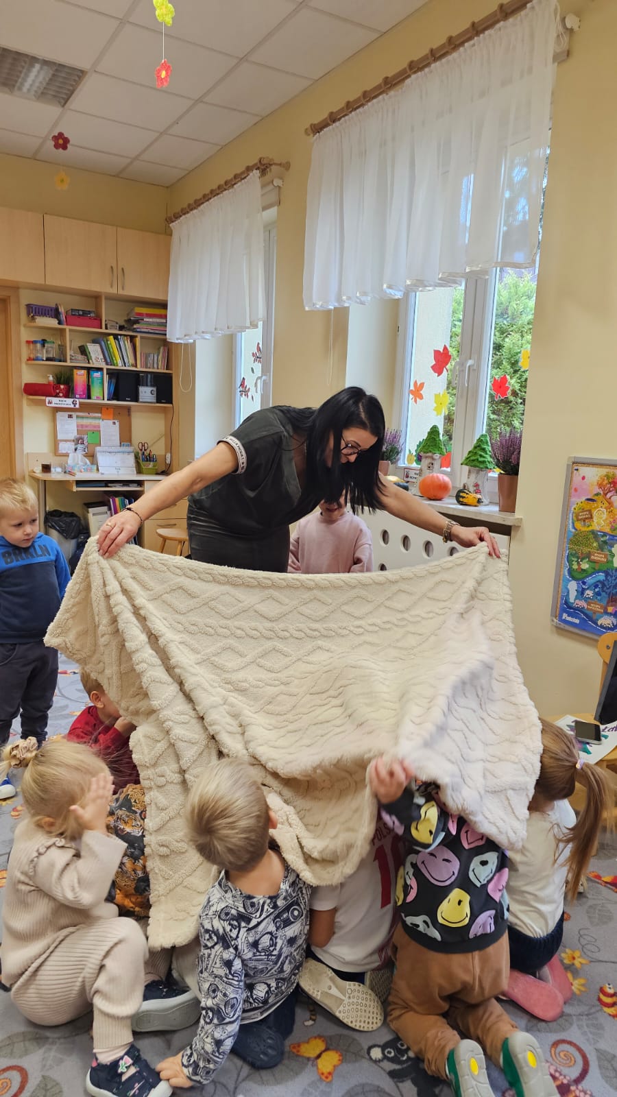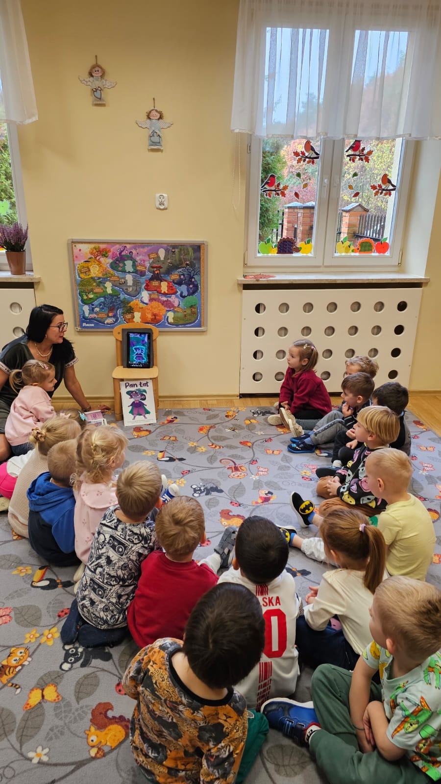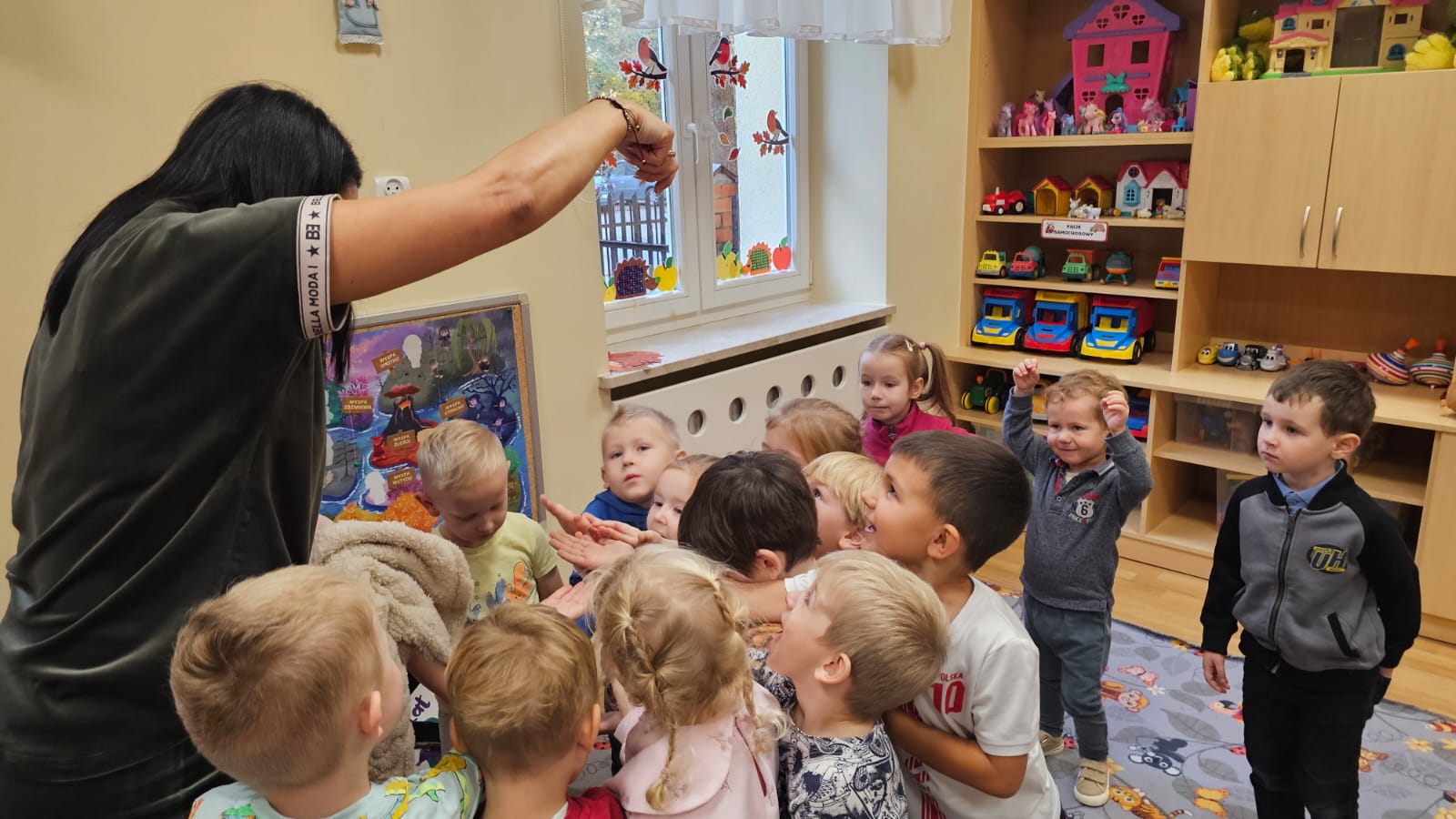 W październiku nasze przedszkolaki poznały kolejnego bohatera z Wyspy Emocji – Pana Łał z Wyspy Zdziwienia. Dzieci z zainteresowaniem wysłuchały bajki o Panu Łał, a następnie rozmawiały o tym, kiedy same czują się zdziwione i jak wygląda wtedy ich twarz oraz ciało. Nie zabrakło również twórczej pracy – przedszkolaki wykonały kartę pracy oraz wzięły udział w eksperymencie ze spadającymi gwiazdami i kometami, który wywołał mnóstwo radości, zachwytu i oczywiście… zdziwienia! Dzięki takim zajęciom dzieci uczą się rozpoznawać i nazywać emocje, a przy tym bawią się, odkrywają i doświadczają świata wszystkimi zmysłami.