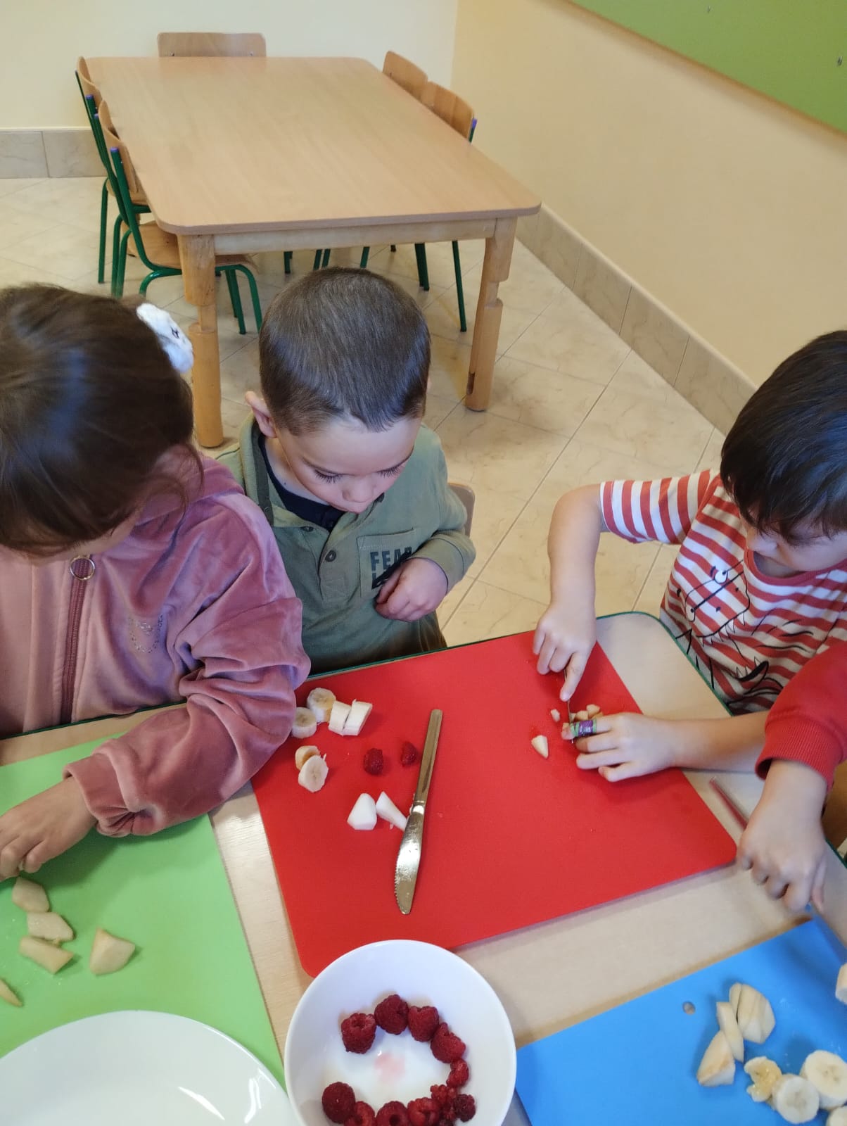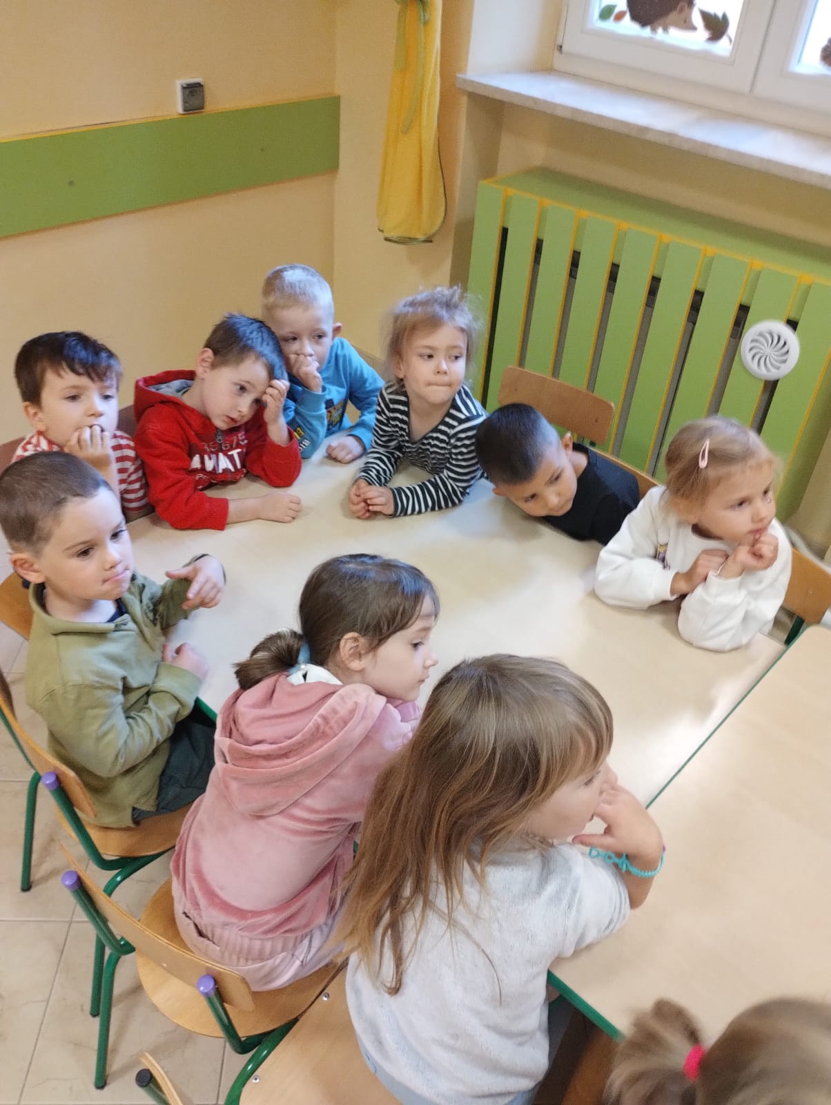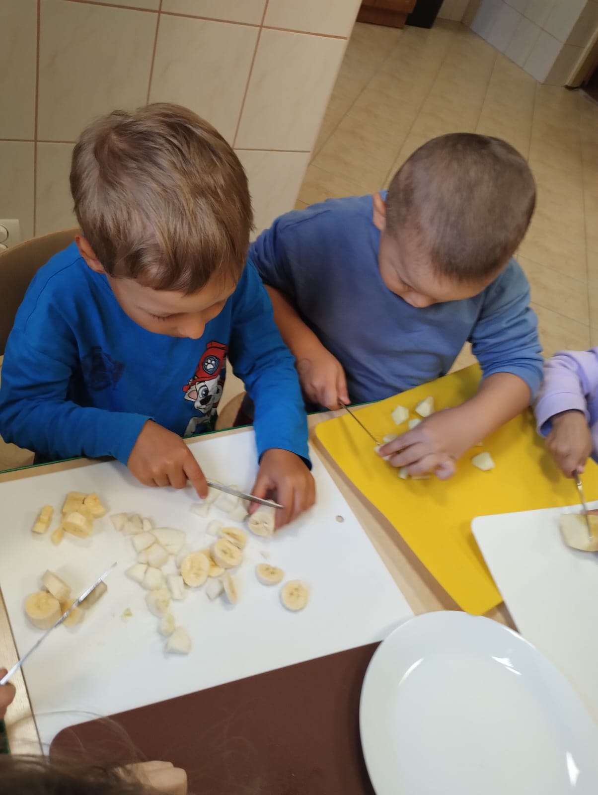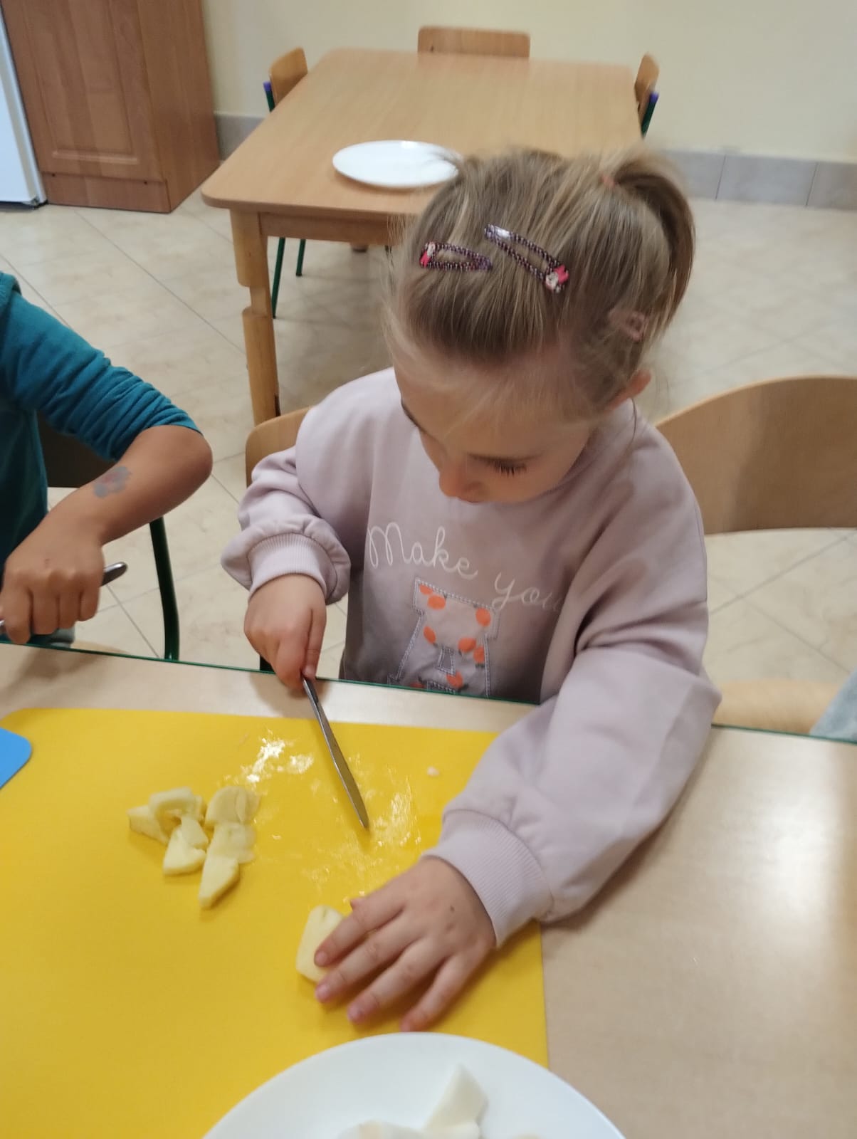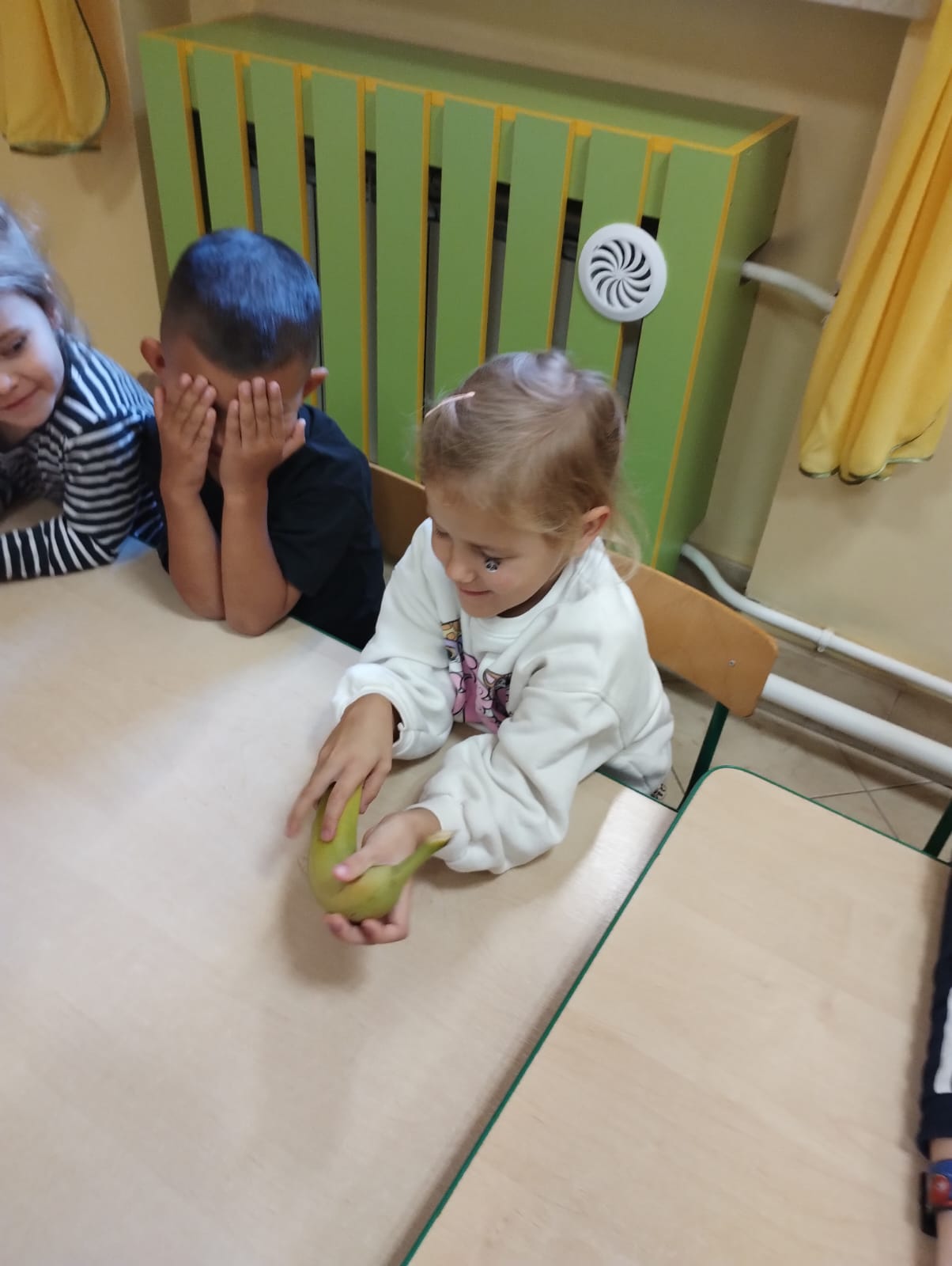 Jak jesień to oczywiście i jej owoce. Motylki i Pszczółki miały okazję poznawać je wielozmysłowo przez oglądanie, dotykanie, wąchanie, smakowanie. Ale na tym nie koniec. Dzieci mogły zrobić owocowe szaszłyki, które z apetytem zjadły na drugie śniadanie. Zaangażowanie przedszkolaków było ogromne! Brawo!!!
