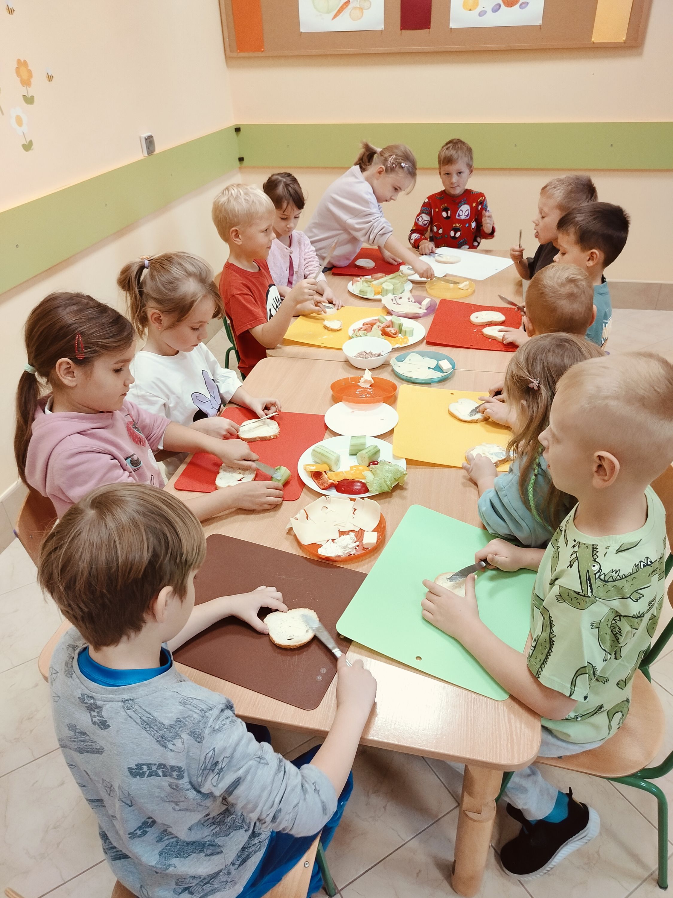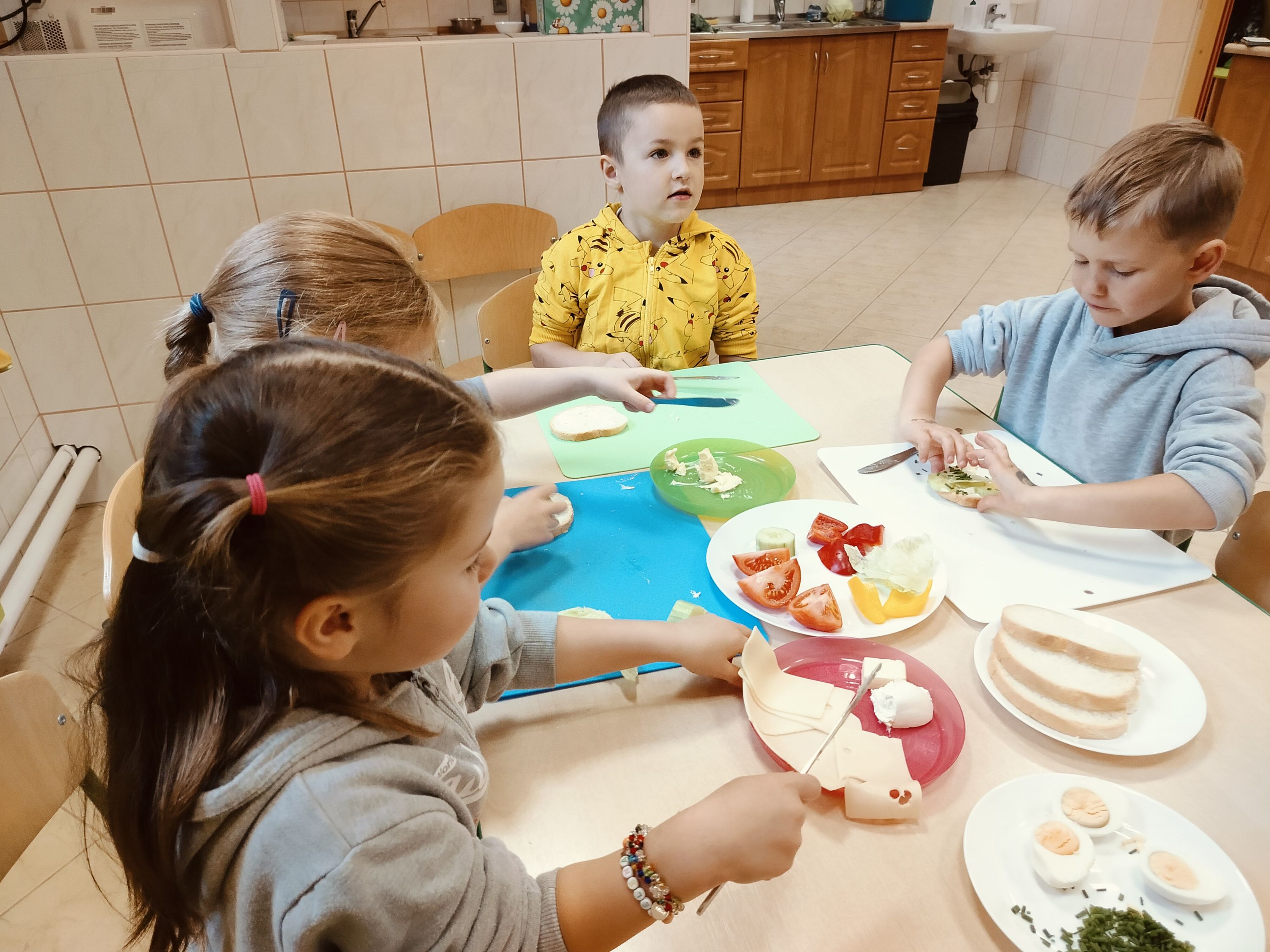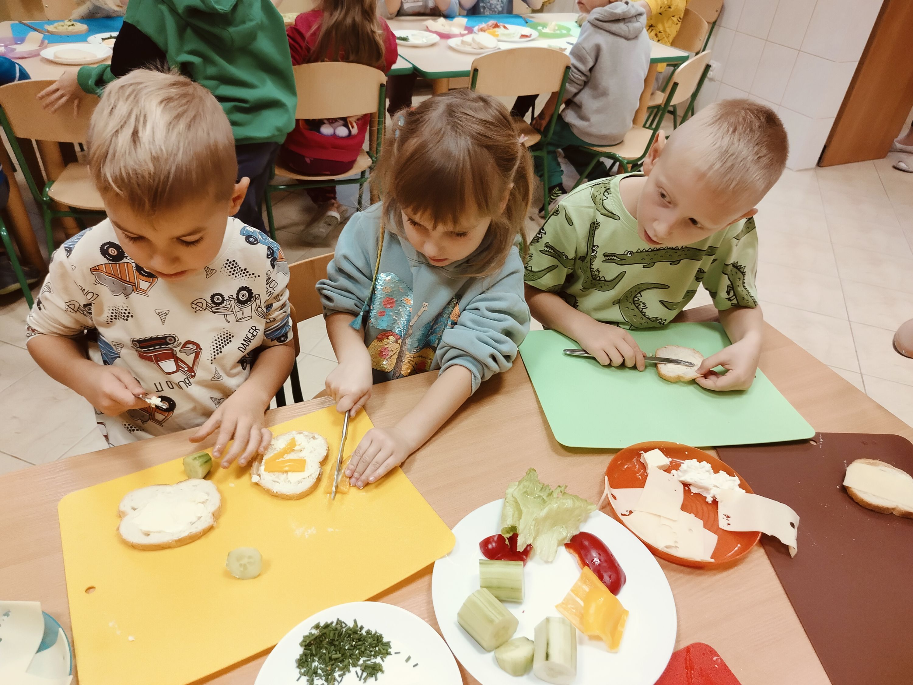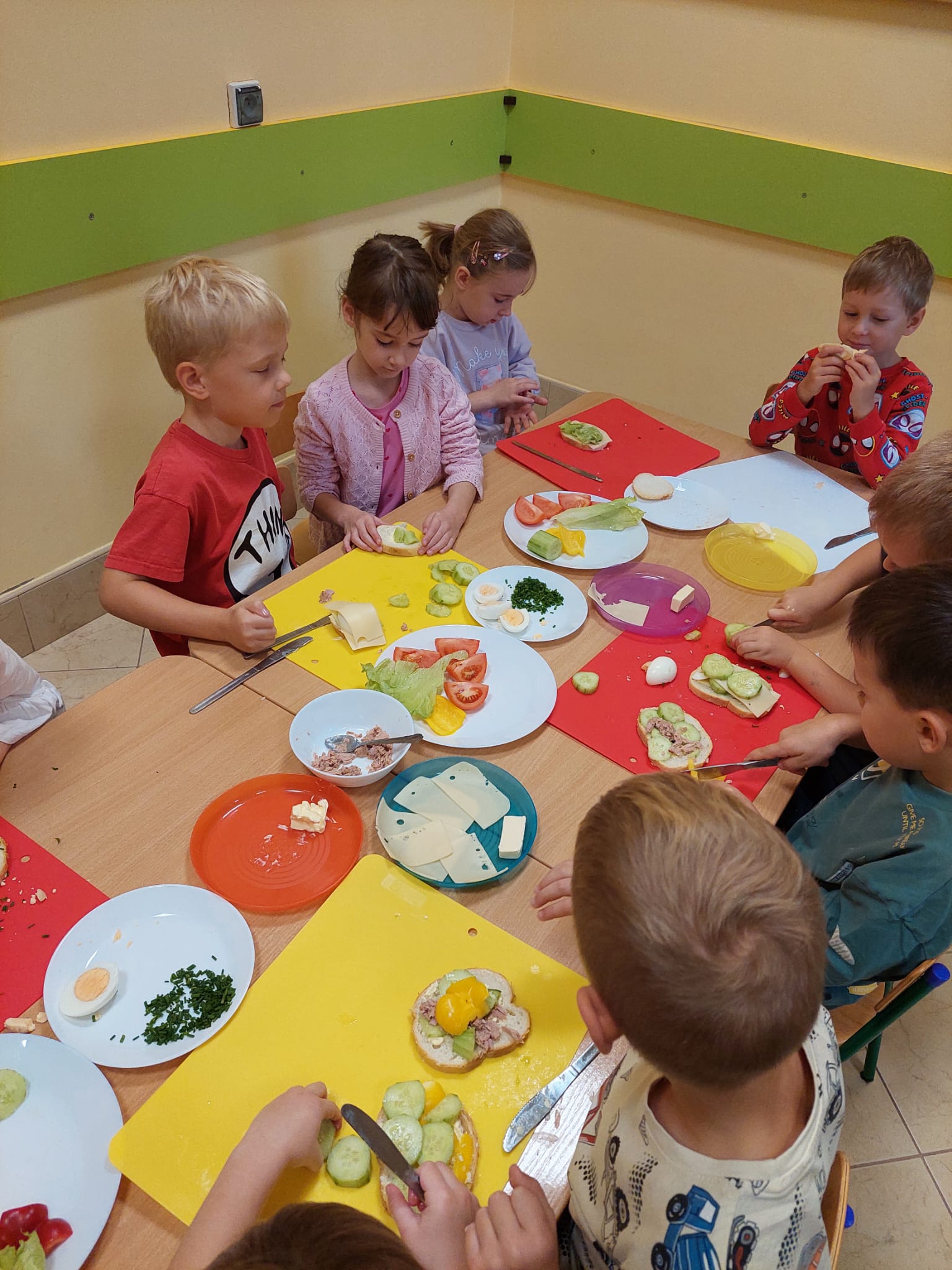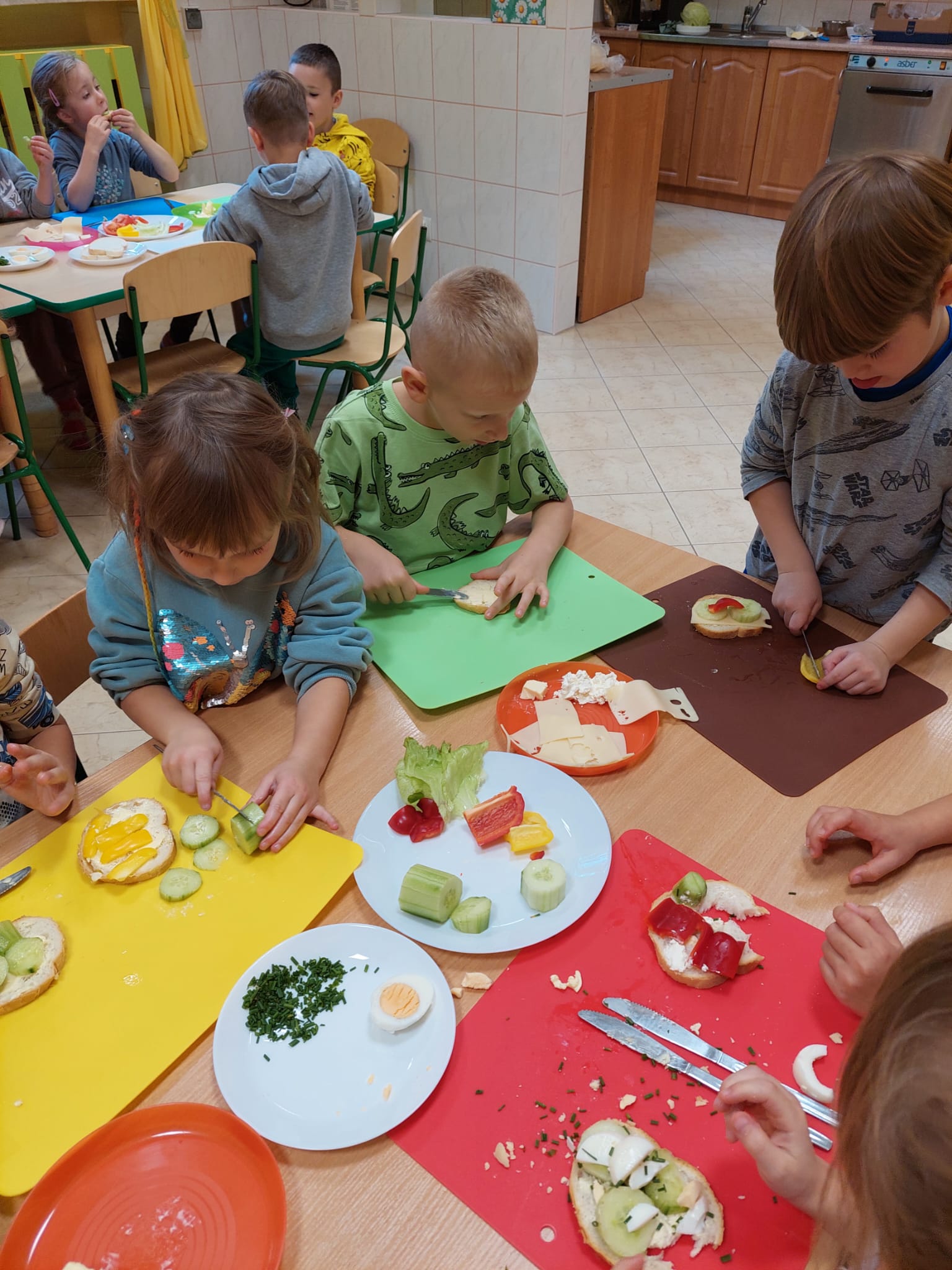 W piątek odbyły się zajęcia kulinarne u Motylków i Mrówek. Dzieci samodzielnie przygotowały na śniadanie "jesienne kanapeczki". Było kolorowo i smakowicie.
