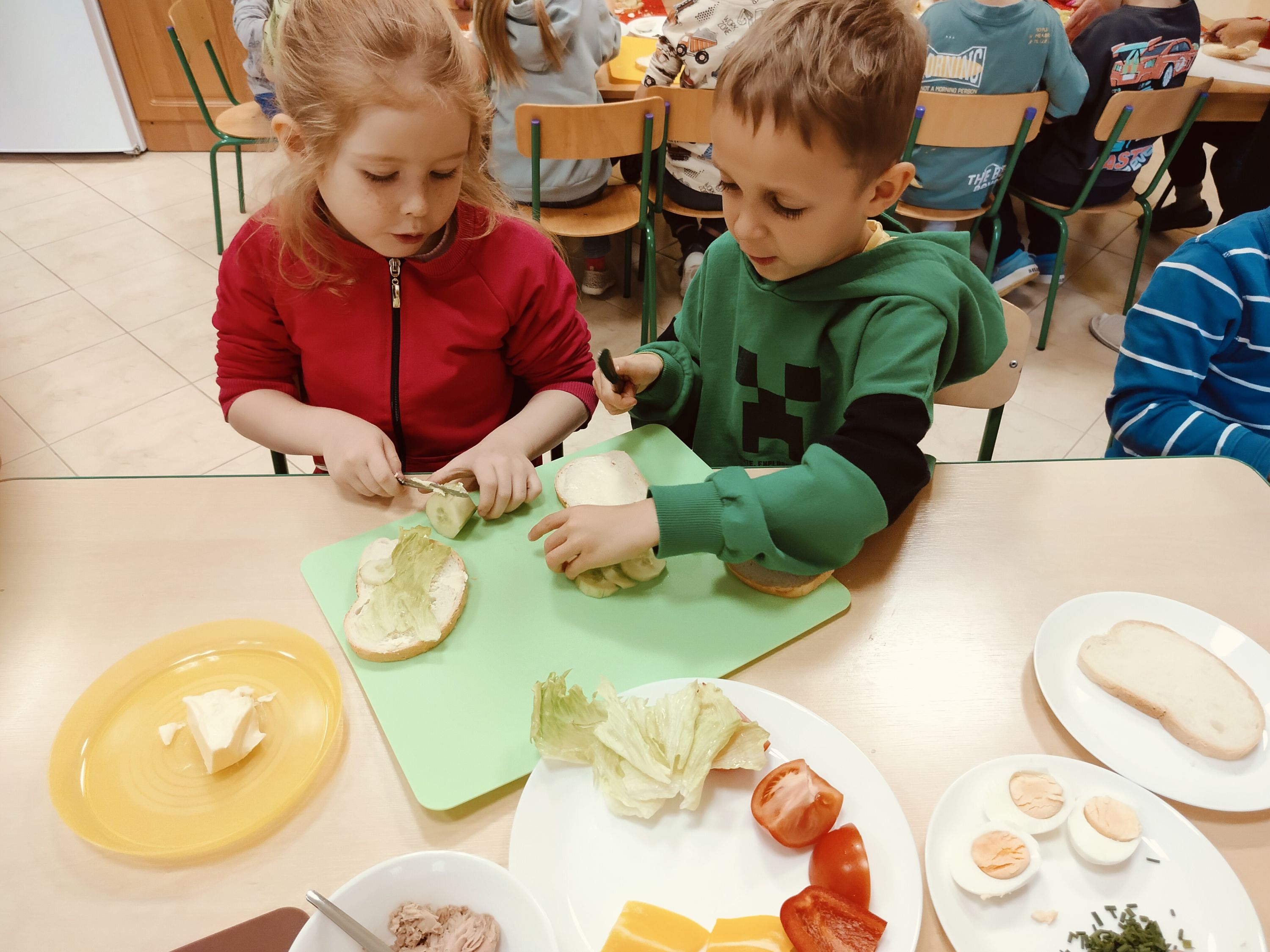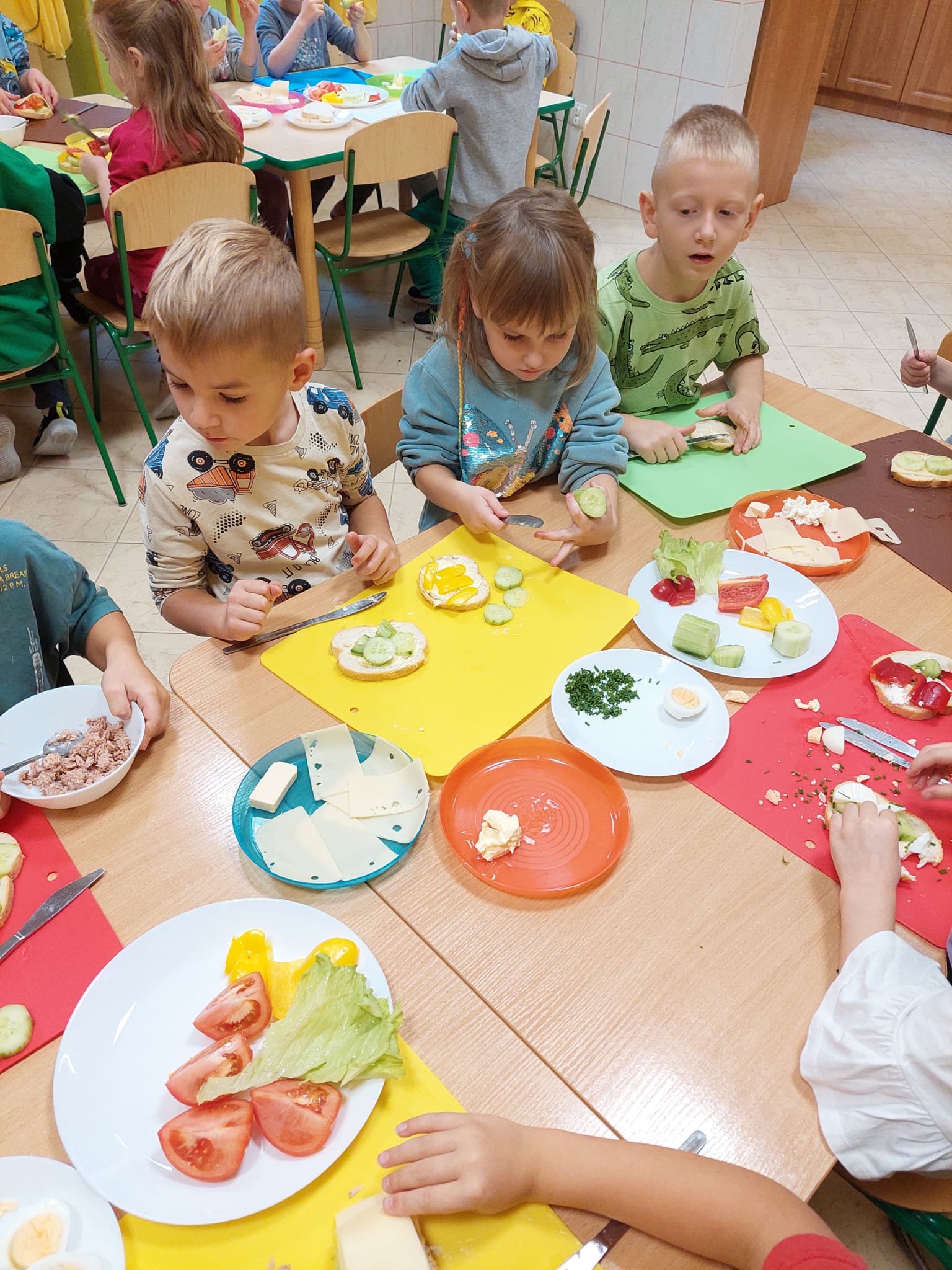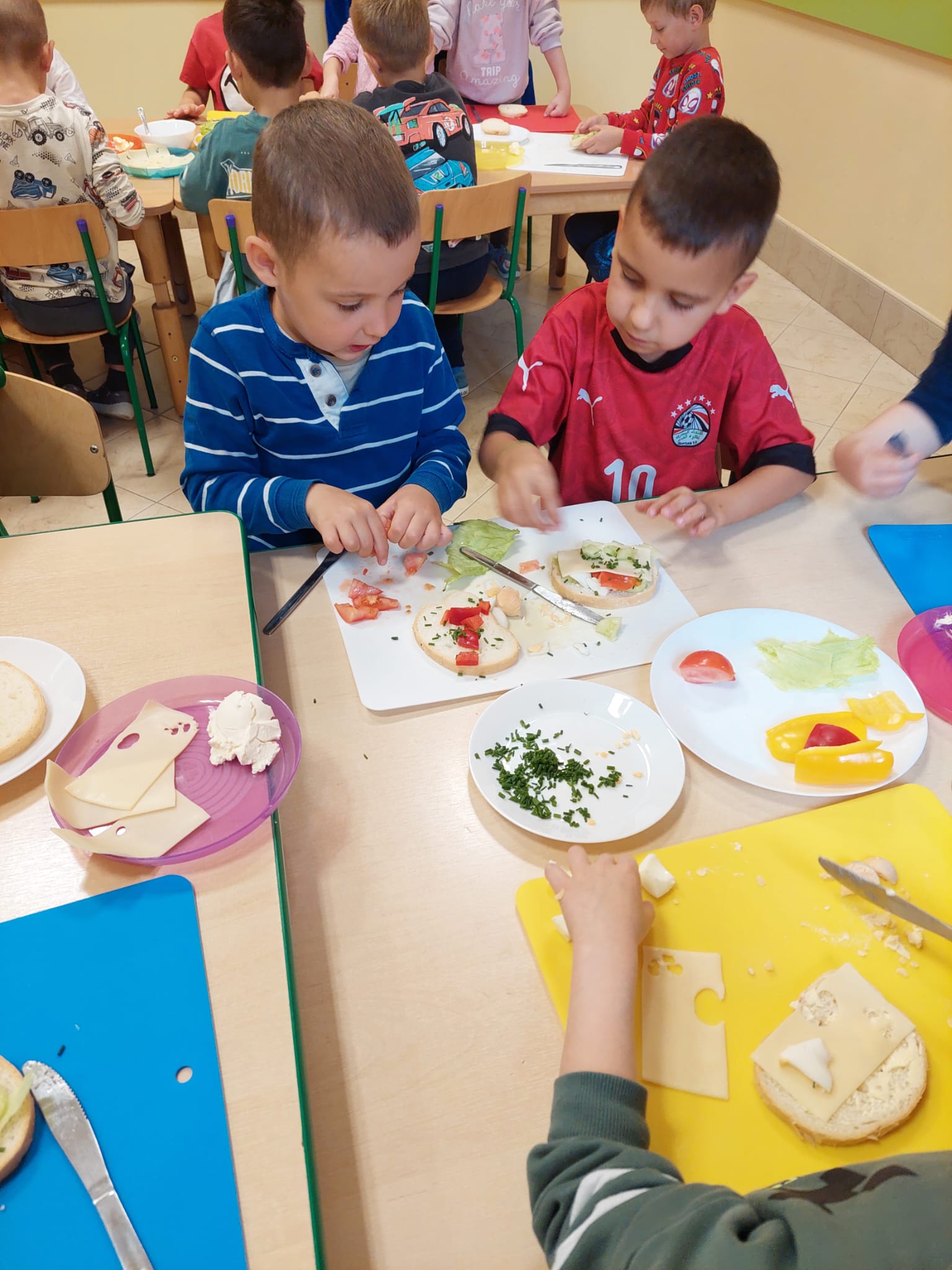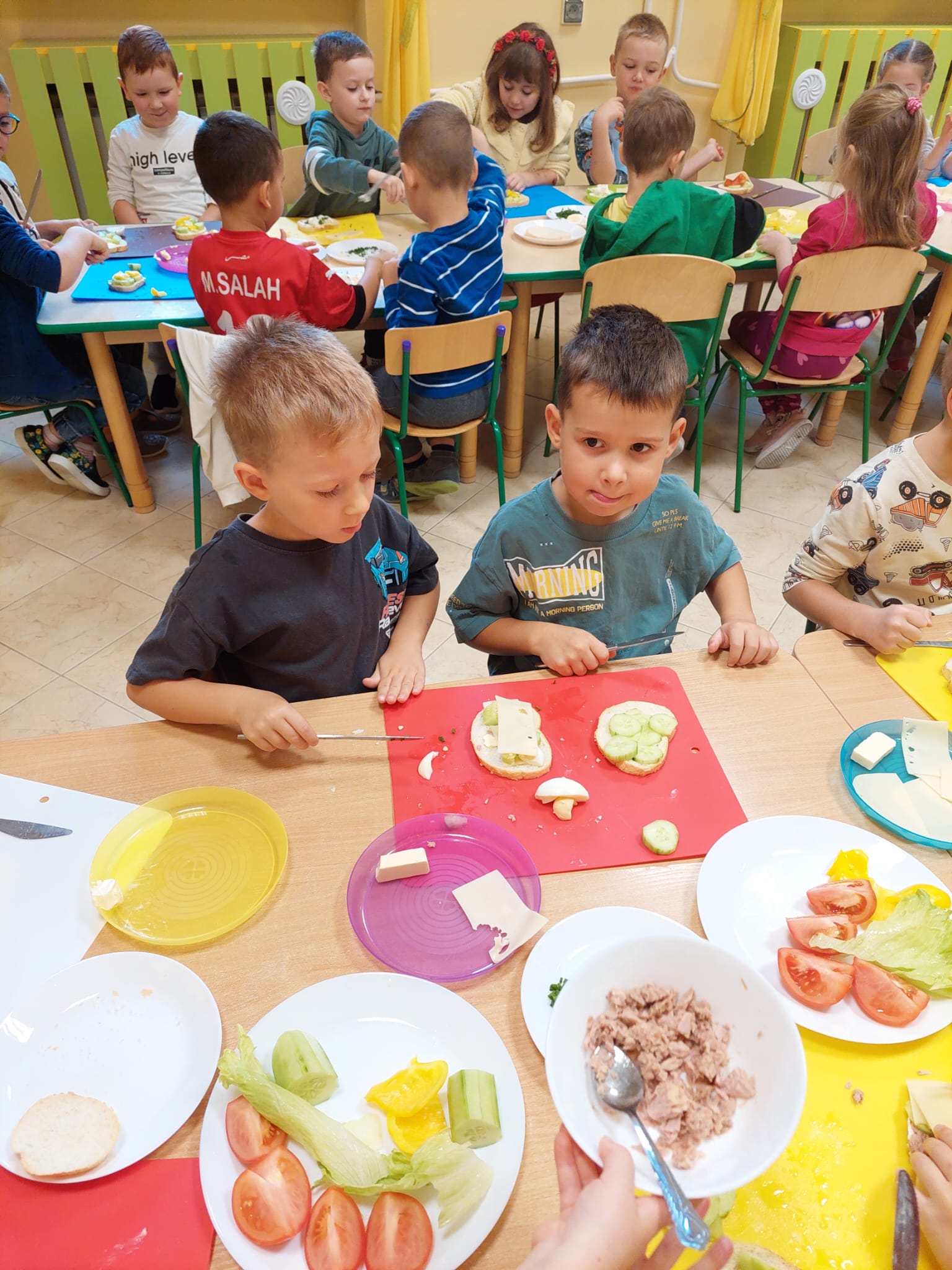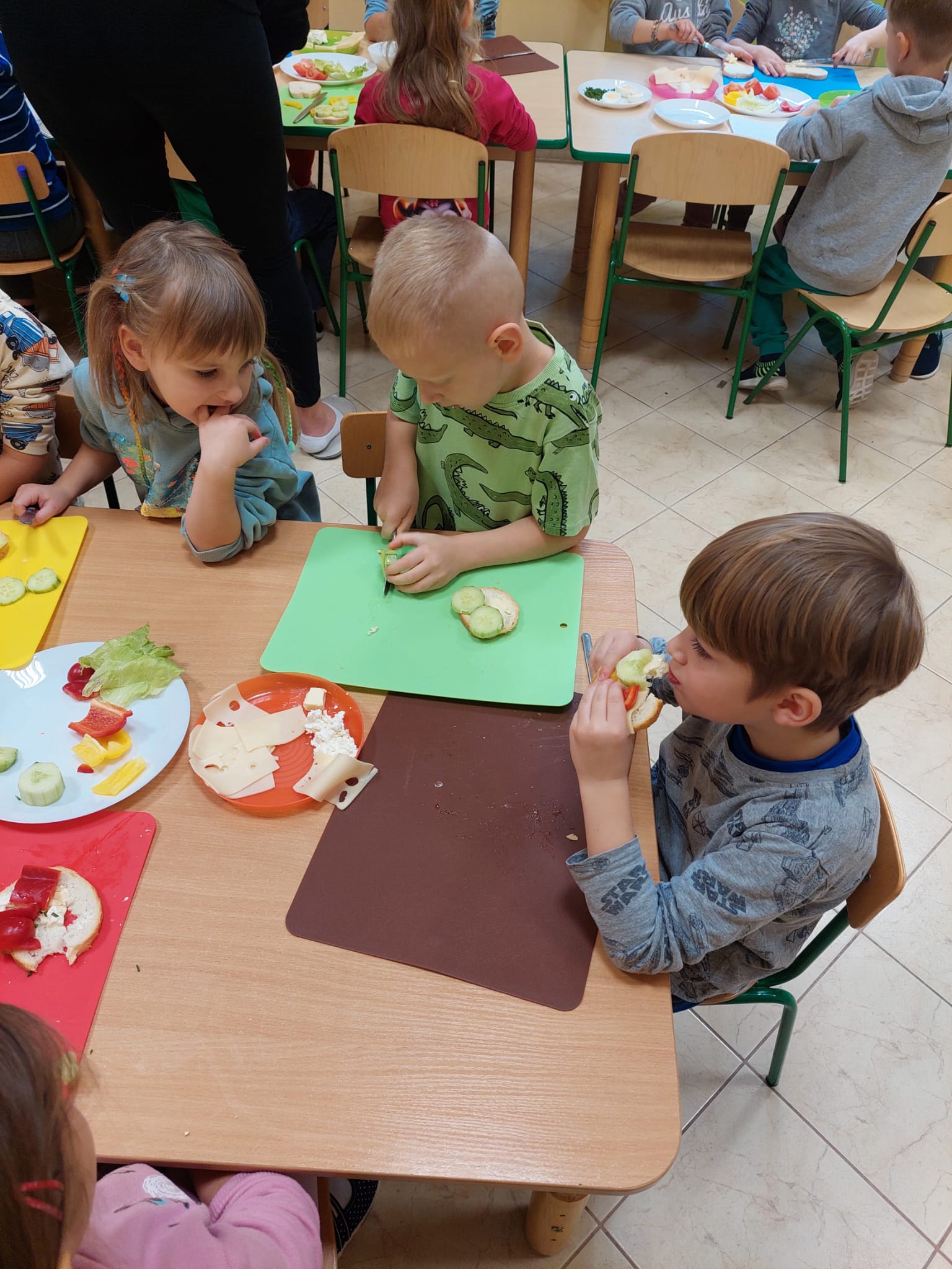 W piątek odbyły się zajęcia kulinarne u Motylków i Mrówek. Dzieci samodzielnie przygotowały na śniadanie "jesienne kanapeczki". Było kolorowo i smakowicie.