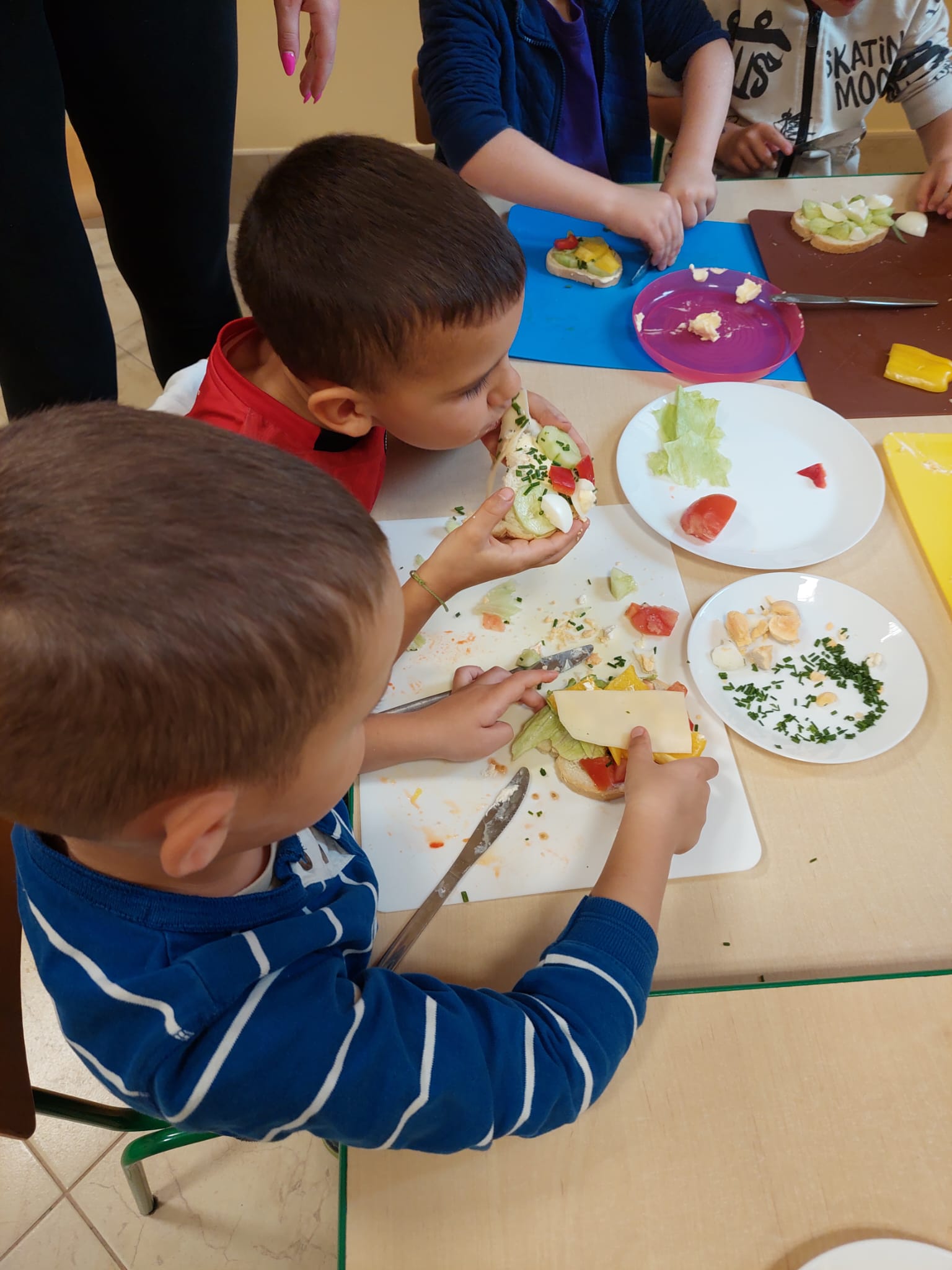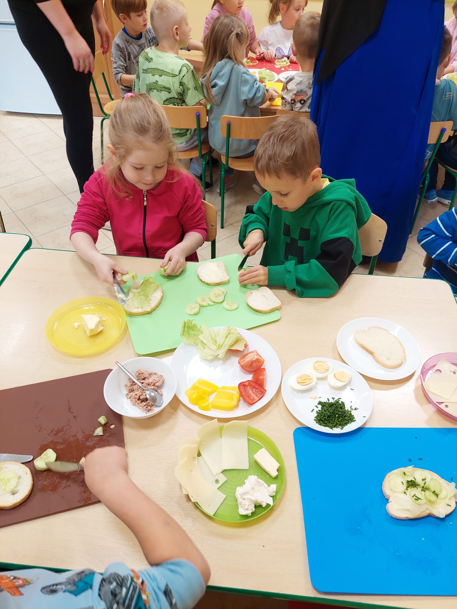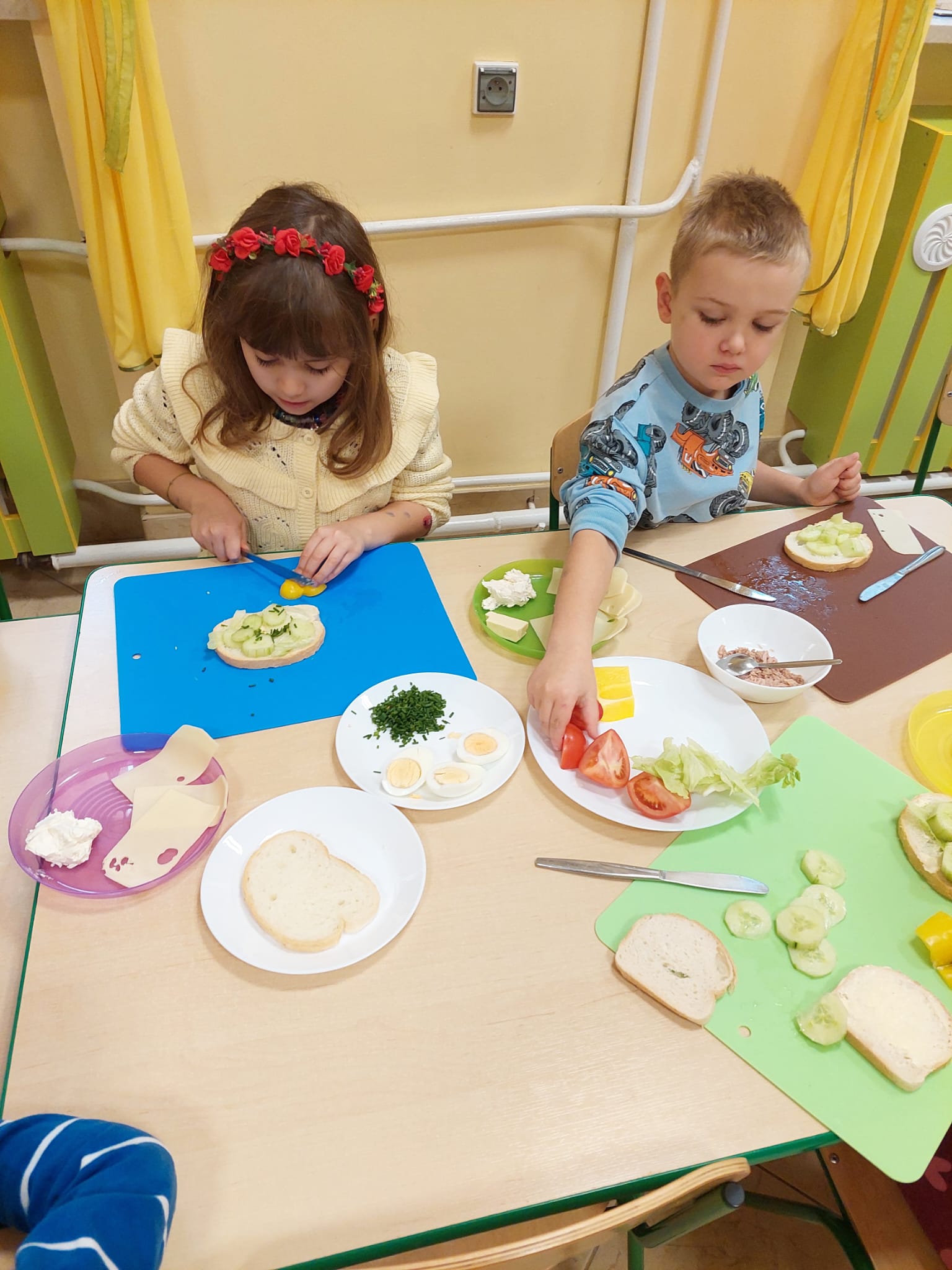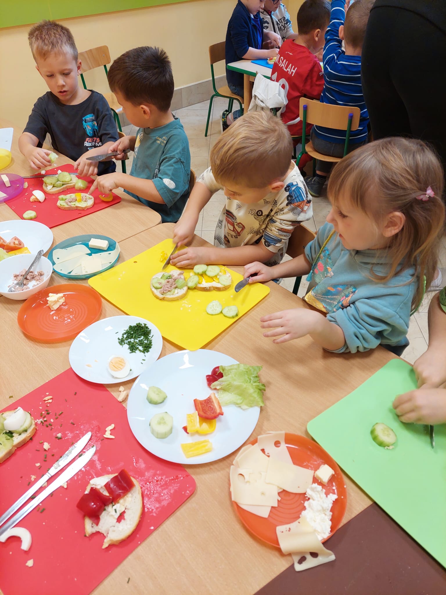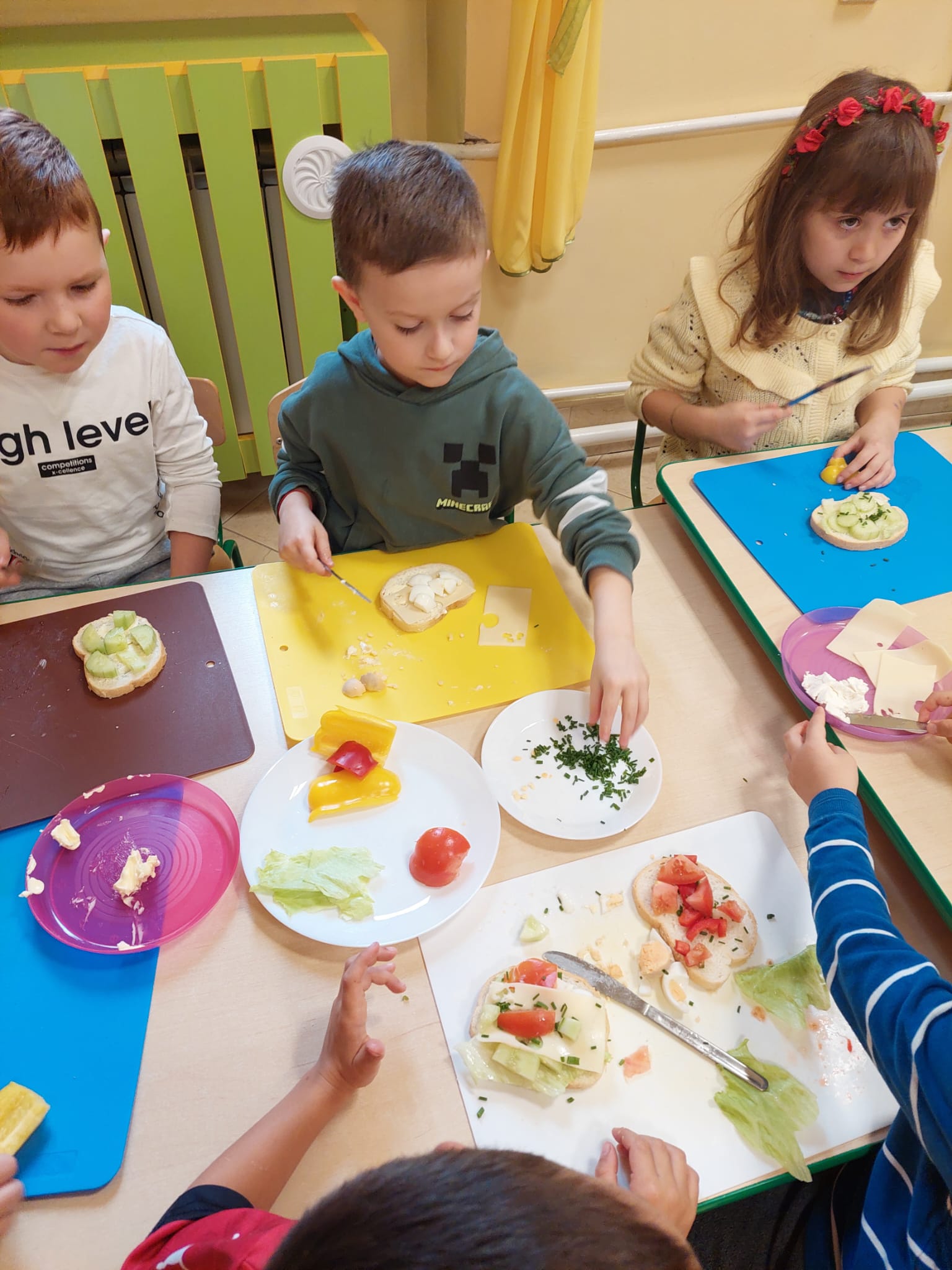 W piątek odbyły się zajęcia kulinarne u Motylków i Mrówek. Dzieci samodzielnie przygotowały na śniadanie "jesienne kanapeczki". Było kolorowo i smakowicie.